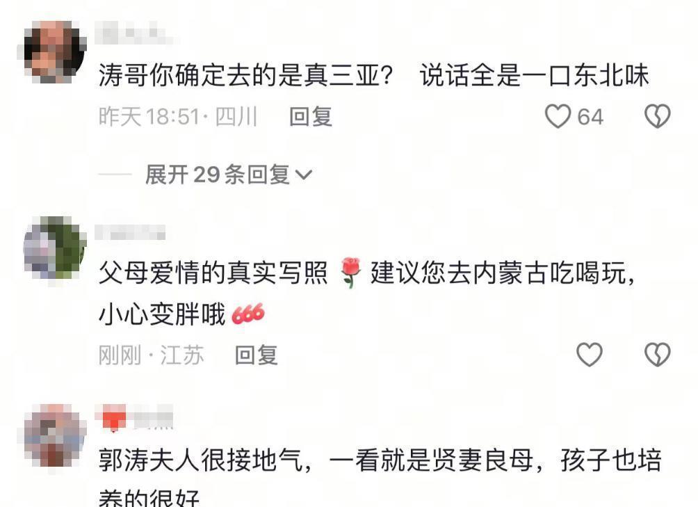 这次出来玩,18岁的石头和15岁的小女儿都没跟着,郭涛还挺感慨说现在孩子大了,想叫他们出门都不乐意了,李燃倒看得开说等俩孩子上了大学,他们夫妻俩更自在,到时候想去哪儿玩就去哪儿。