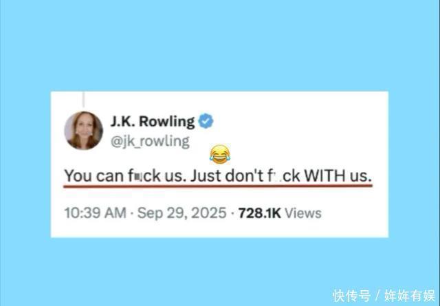 艾玛的“求和”,只换来罗琳的连环反击。 9月25日,罗琳转发自己早前的帖子,冷嘲热讽:“提醒那些把干草叉藏起来的人,当初冲在最前面的时候挺勇敢啊。” 27日,她干脆转发了恶搞艾玛的视频,明摆着“我不接受”。